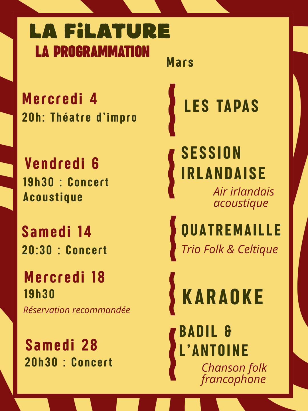 Mais nous proposons aussi des Karaokés, des Jam Sessions, du théâtre d’improvisation, du Stand Up, et bien d’autres animations.
